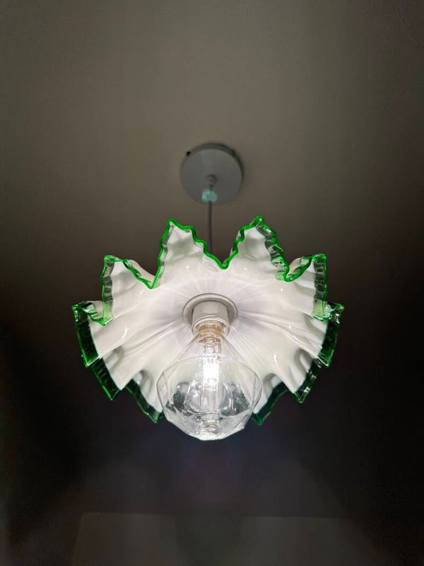 Deze lamp valt onder de Murano-stijl / Italiaans glasdesign met een duidelijke organische, bloemachtige vorm.