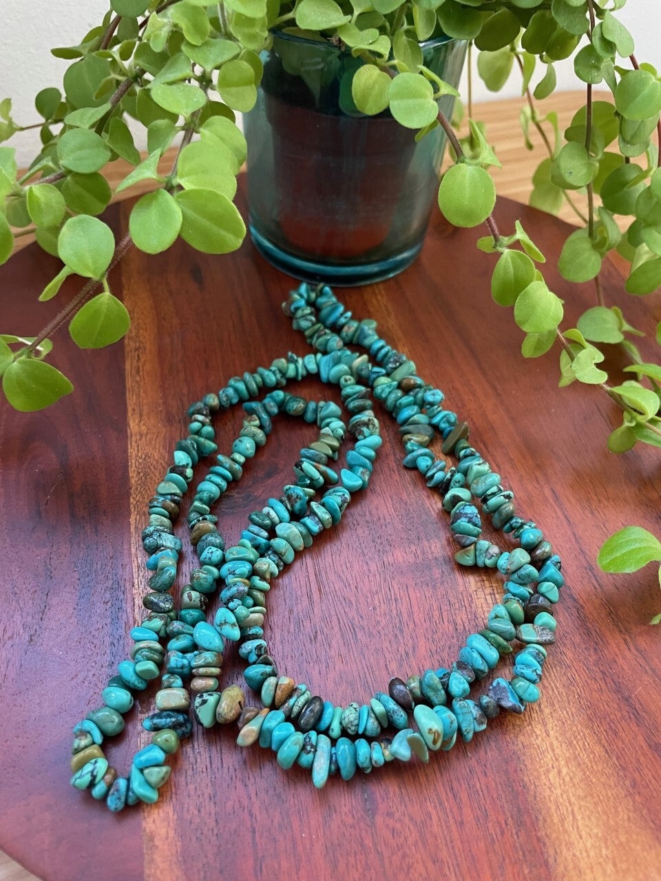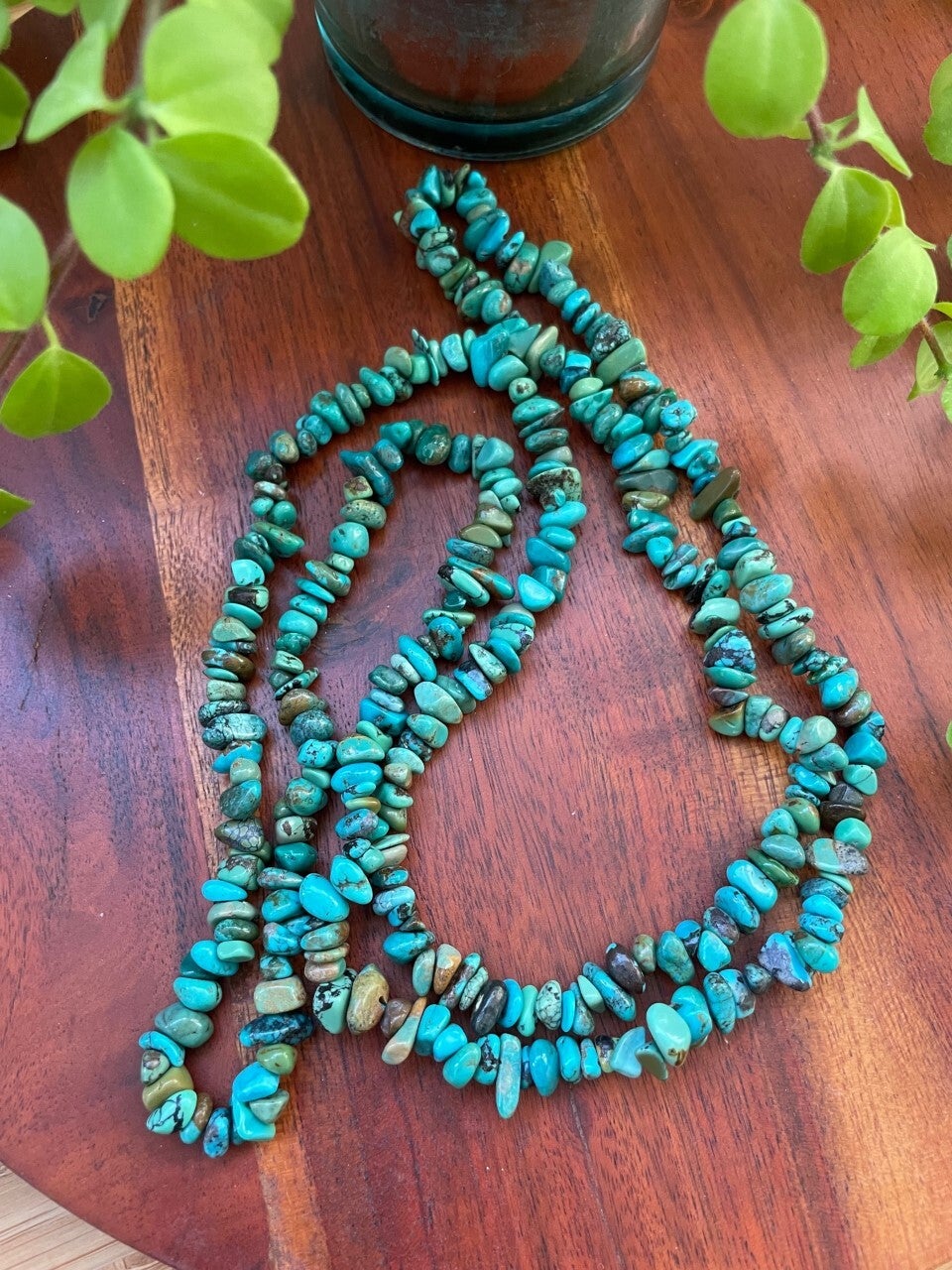Prachtige split / chip ketting van de prachtige kostbare steen Chrysocolla.