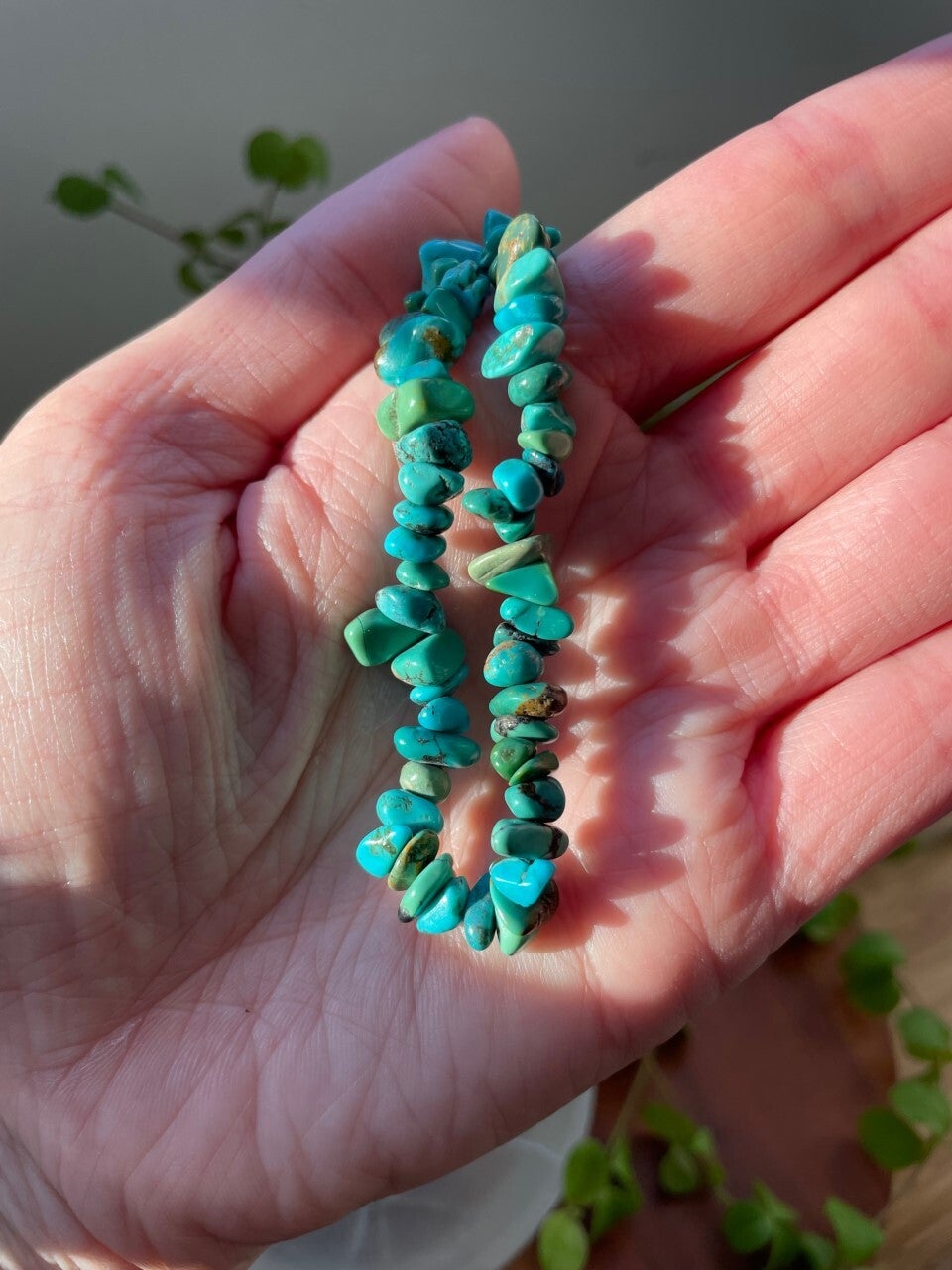 Chrysocolla is een steen die je meteen meeneemt op reis door z’n prachtige mix van groenblauwe tinten. Soms lijkt hij op turquoise water, dan weer op diep bosgroen. Geen steen is hetzelfde, waardoor elke chrysocolla een klein kunstwerkje van de natuur is.