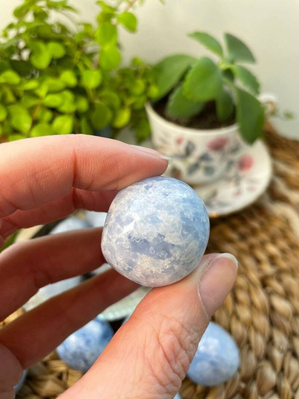 Deze steen wordt gevonden in landen zoals Mexico, IJsland en Zuid-Afrika. Blauwe calciet is vrij zacht, dus ga er voorzichtig mee om. Veel mensen gebruiken hem als ondersteuning bij stress of wanneer ze beter hun gedachten willen ordenen.