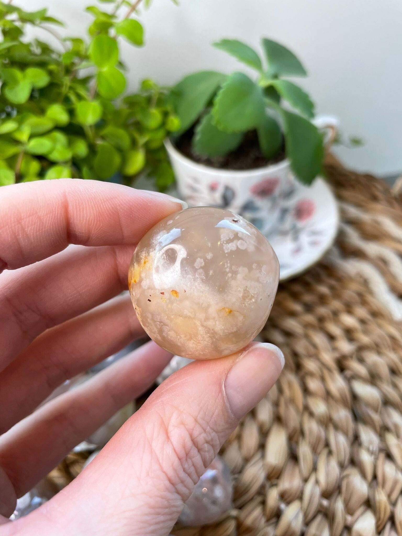 Leuk weetje: de “bloemen” in bloemagaat ontstaan door kleine insluitsels van mineralen tijdens het kristalliseren. Hierdoor heeft elke steen zijn eigen unieke patroon – geen twee zijn hetzelfde!