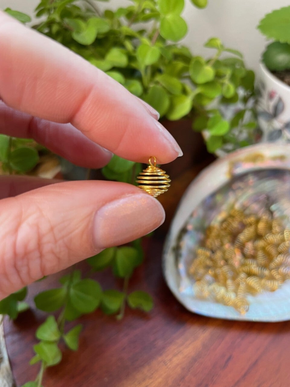 Deze kooitjes zijn geschikt voor het dragen van kleine edelsteentjes aan een ketting, armband of oorbellen. Dit formaat kooi is heel geschikt voor oorbellen of aan een armbandje.