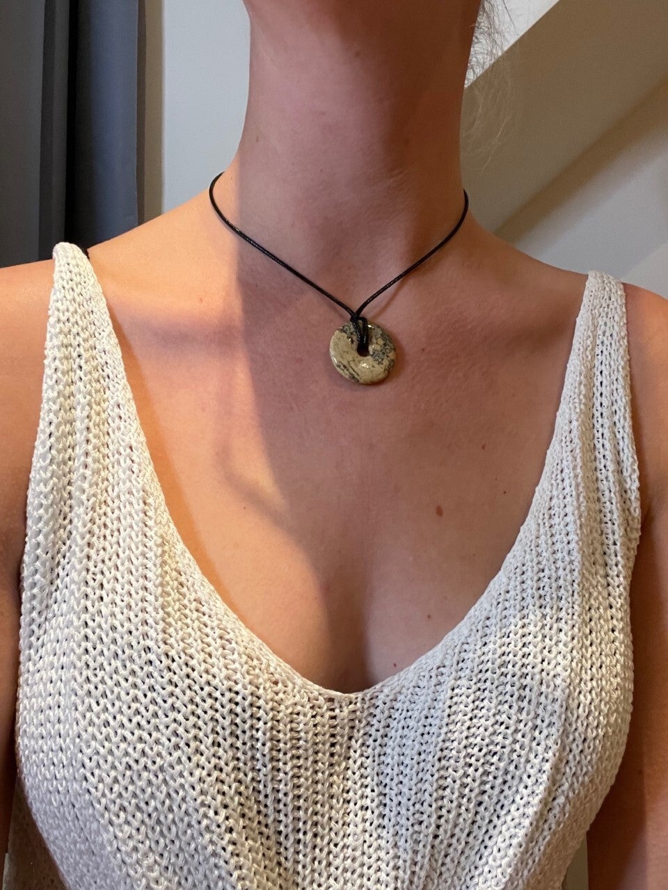 Deze prachtig donuthanger wordt geleverd met een waxkoord van 1 meter!