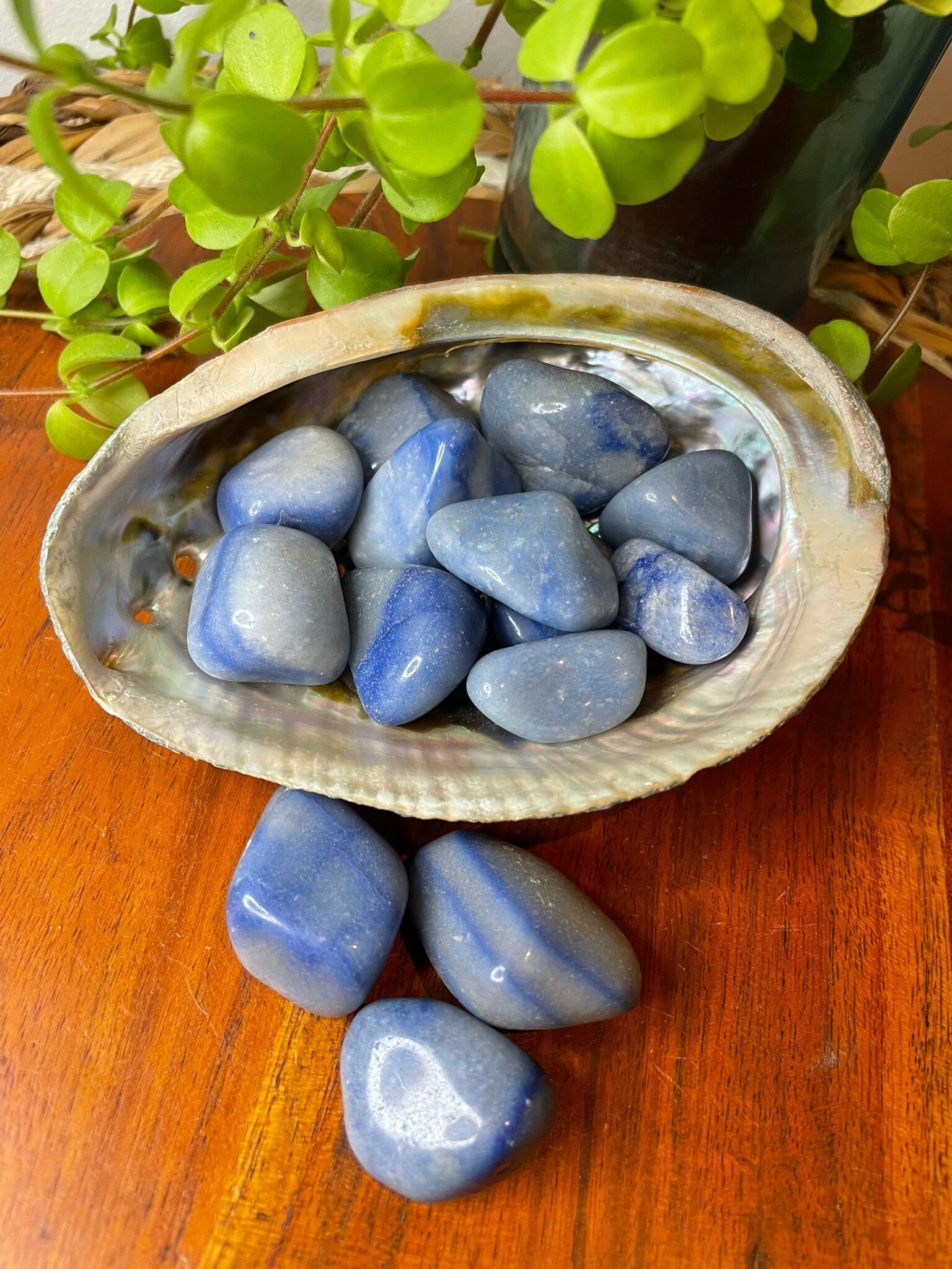 Blauwe kwarts is een prachtige steen met een zachte, blauwe kleur die meteen een kalmerende uitstraling heeft. Het is een fijne keuze om even je hoofd te laten ontspannen of wat rust in je dag te brengen. Ook leuk om bij je werk- of studieplek te hebben voor net dat beetje extra focus.