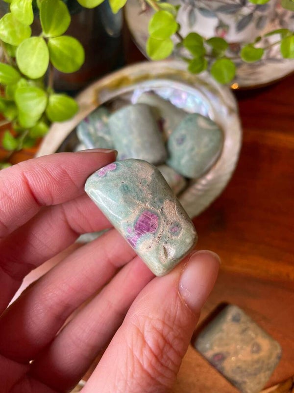 Het lijken net snoepjes deze prachtige hoge kwaliteit trommelstenen van Robijn in Fuchsiet