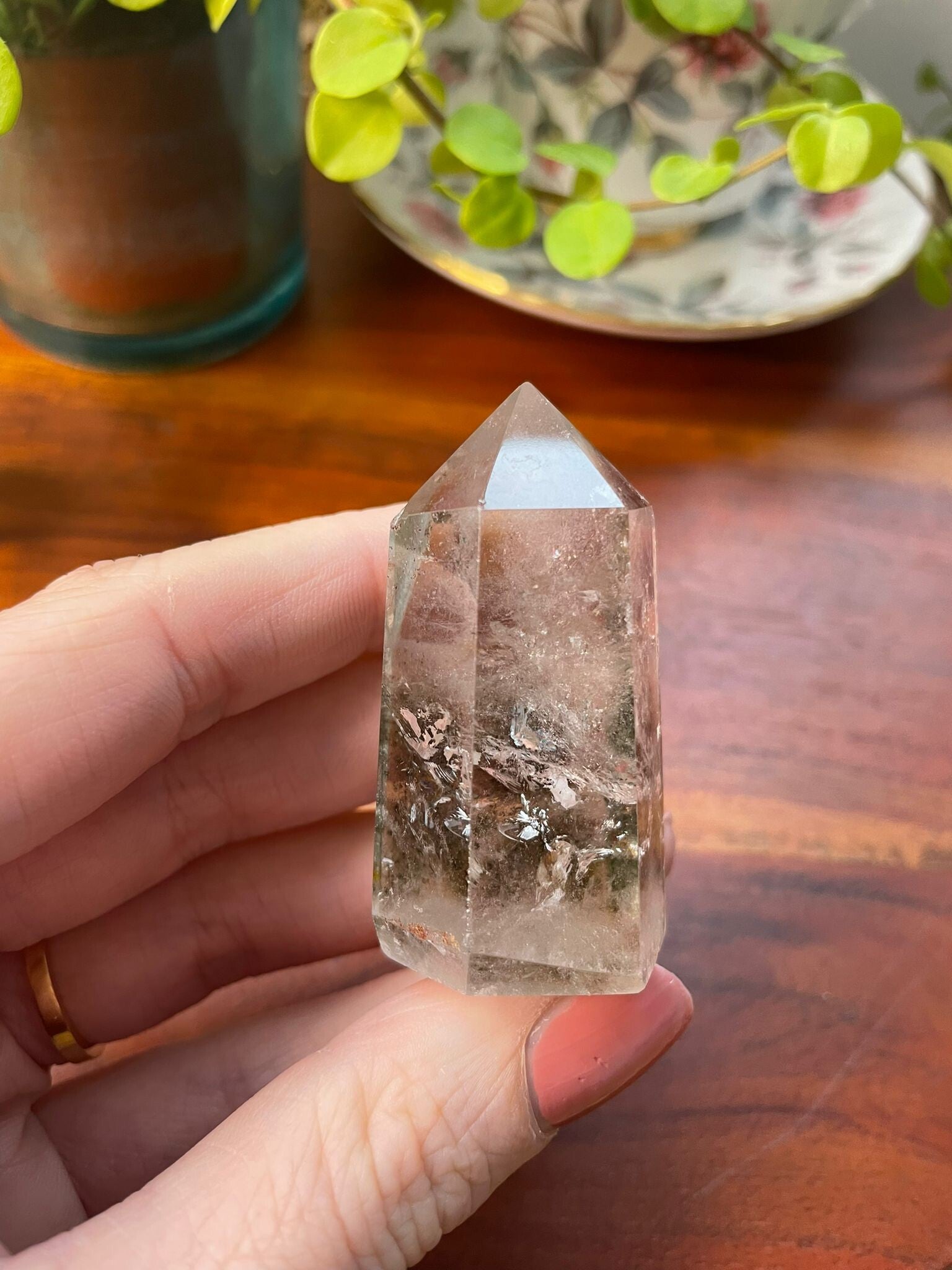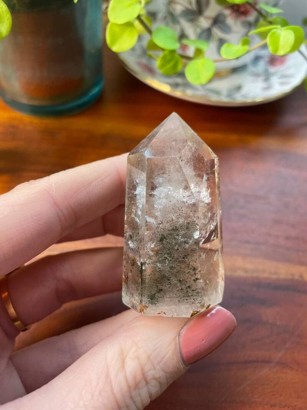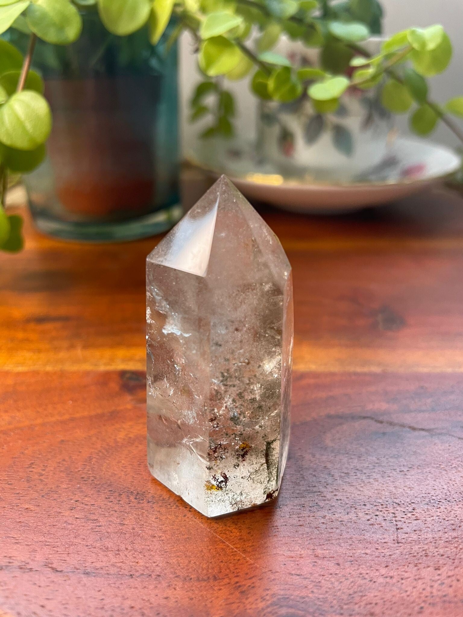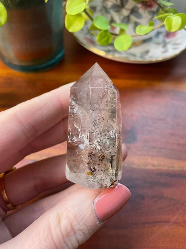 Deze bijzondere steen wordt voornamelijk gevonden in Brazilië, maar ook in landen als India en Madagaskar. Het kristal is miljoenen jaren oud en heeft door de insluitsels een intrigerende diepte gekregen, alsof je in een andere wereld kijkt.