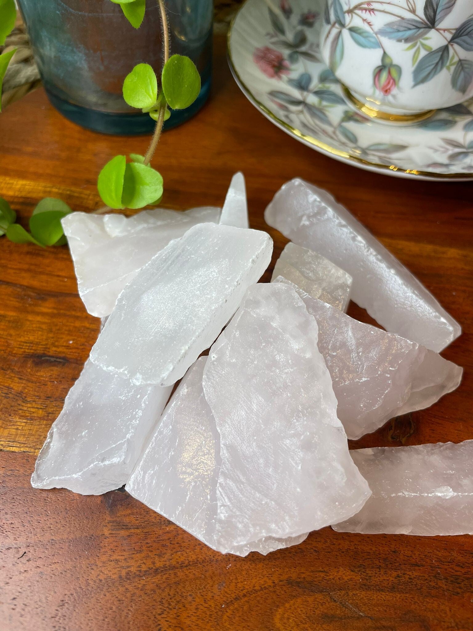Mangano calciet is een lieflijk roze steen met een romige glans, soms met subtiele witte banden of wolkjes. De kleur komt van kleine hoeveelheden mangaan in het mineraal calciet — vandaar de naam. Deze zachte schoonheid wordt vooral gevonden in Peru, Mexico en Pakistan, en staat bekend om z’n kalmerende, hartverwarmende uitstraling.