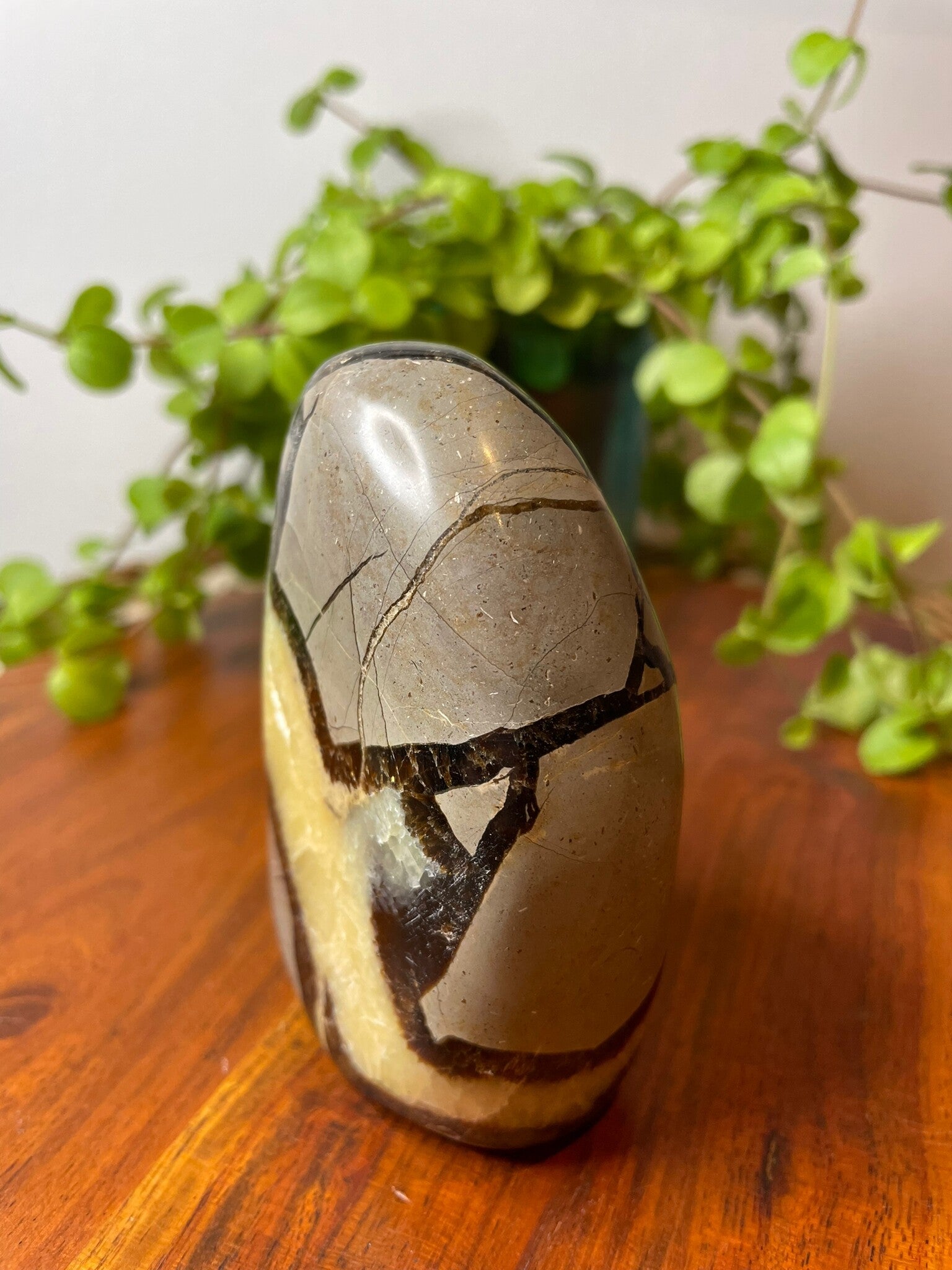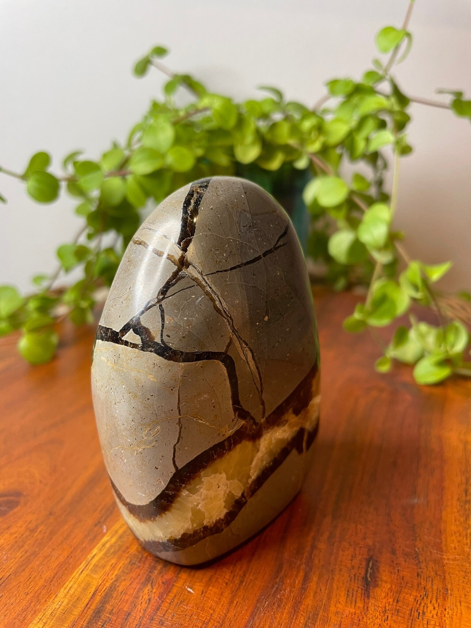 Leuk weetje: septarie wordt ook wel “drakensteen” genoemd, omdat het patroon doet denken aan de geschubde huid van een mythische draak. Een beetje natuurlijke fantasy, rechtstreeks uit de aarde.