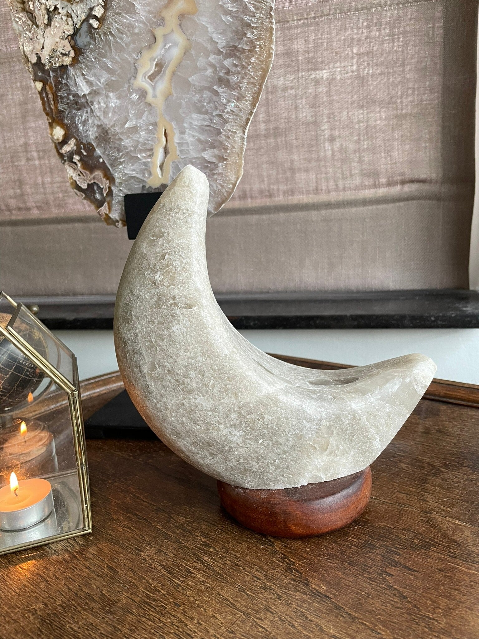 Omdat zoutsteen eigenlijk gewoon… zout is, vraagt het wel wat extra aandacht. Het trekt namelijk vocht aan uit de lucht. Zet je steen daarom liever niet in vochtige ruimtes (zoals de badkamer of keuken), en plaats hem bij voorkeur op een schoteltje of onderzetter zodat er geen zoutkringen op meubels ontstaan.