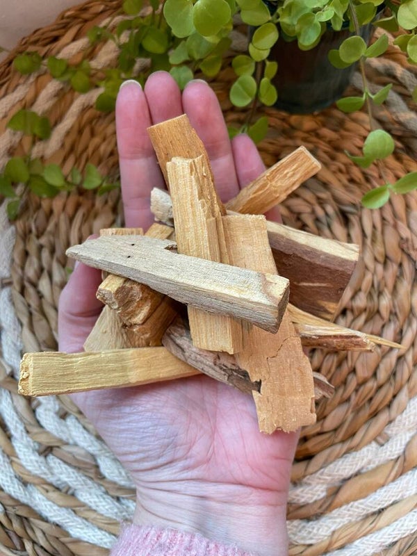 Je krijgt 50 gram aan grove houtchips van de palo santo.
