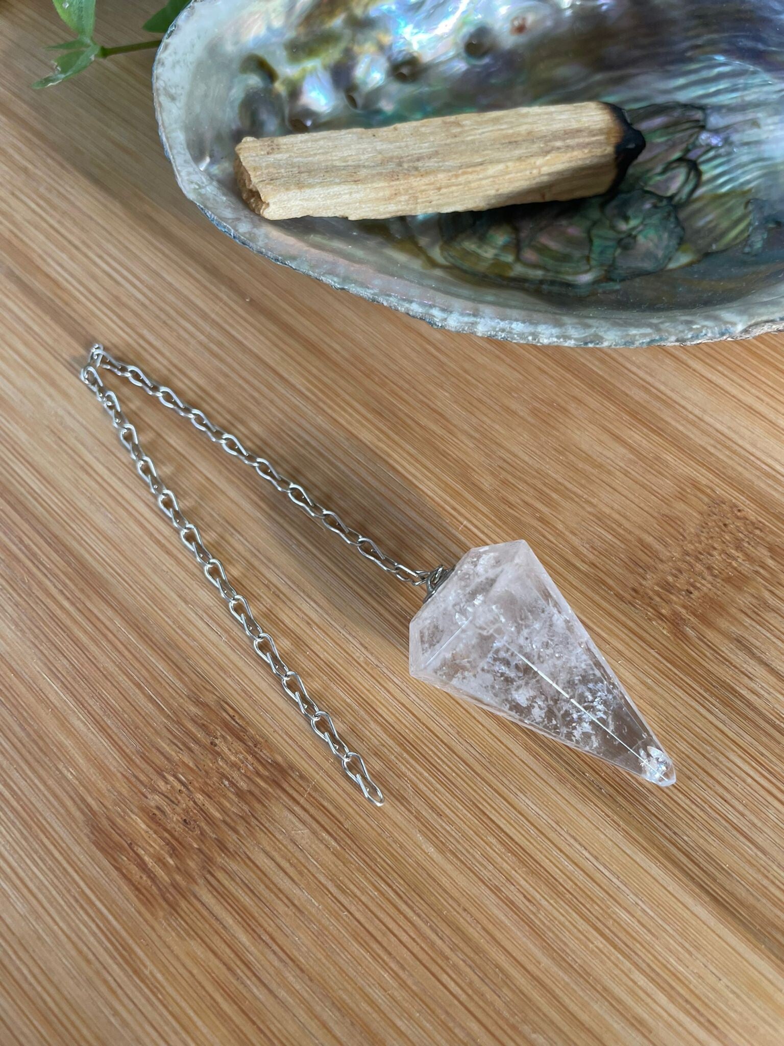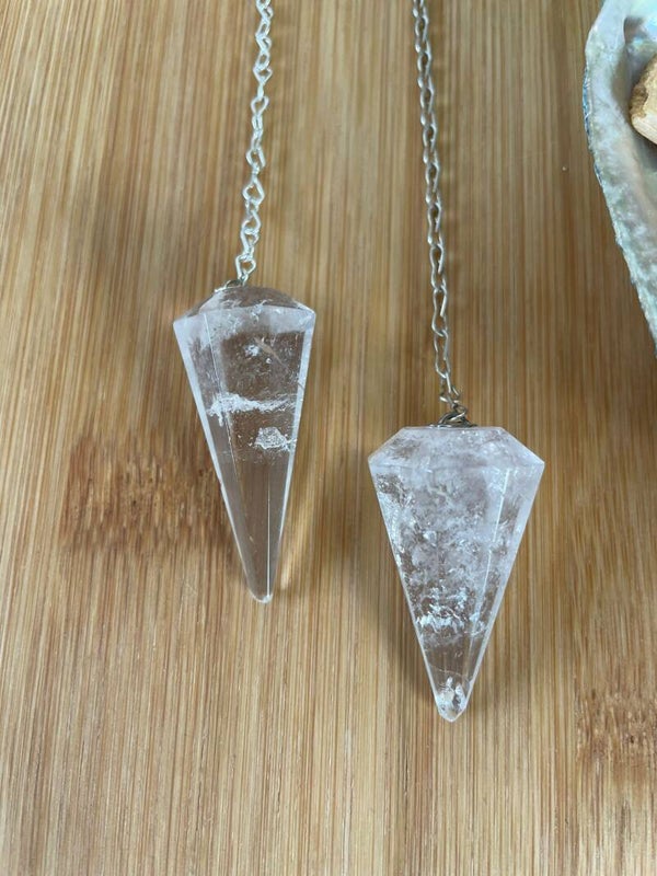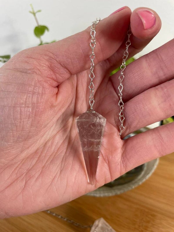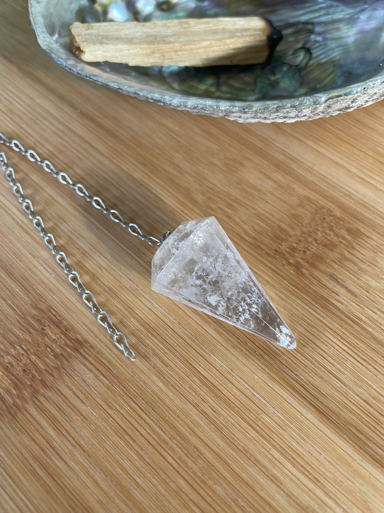 Zilverkleuring kettingkje met pendel van Bergkristal.Hoogte steen: Ongeveer 3,5 cmHoogte inc ketting: Ongeveer 19 cm