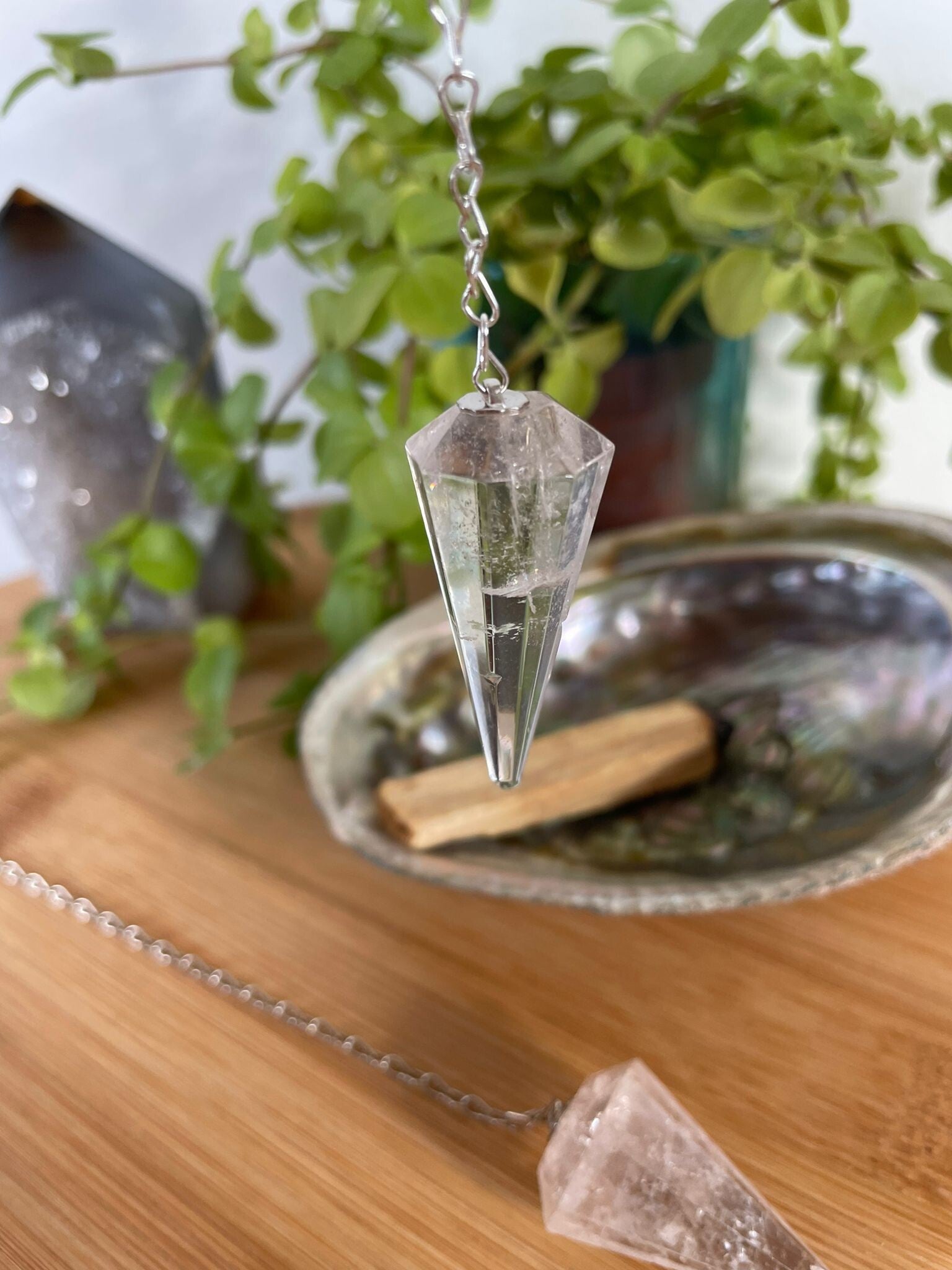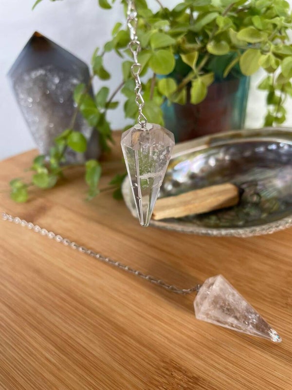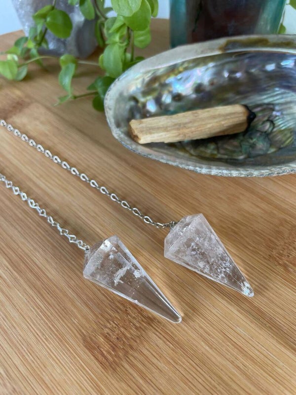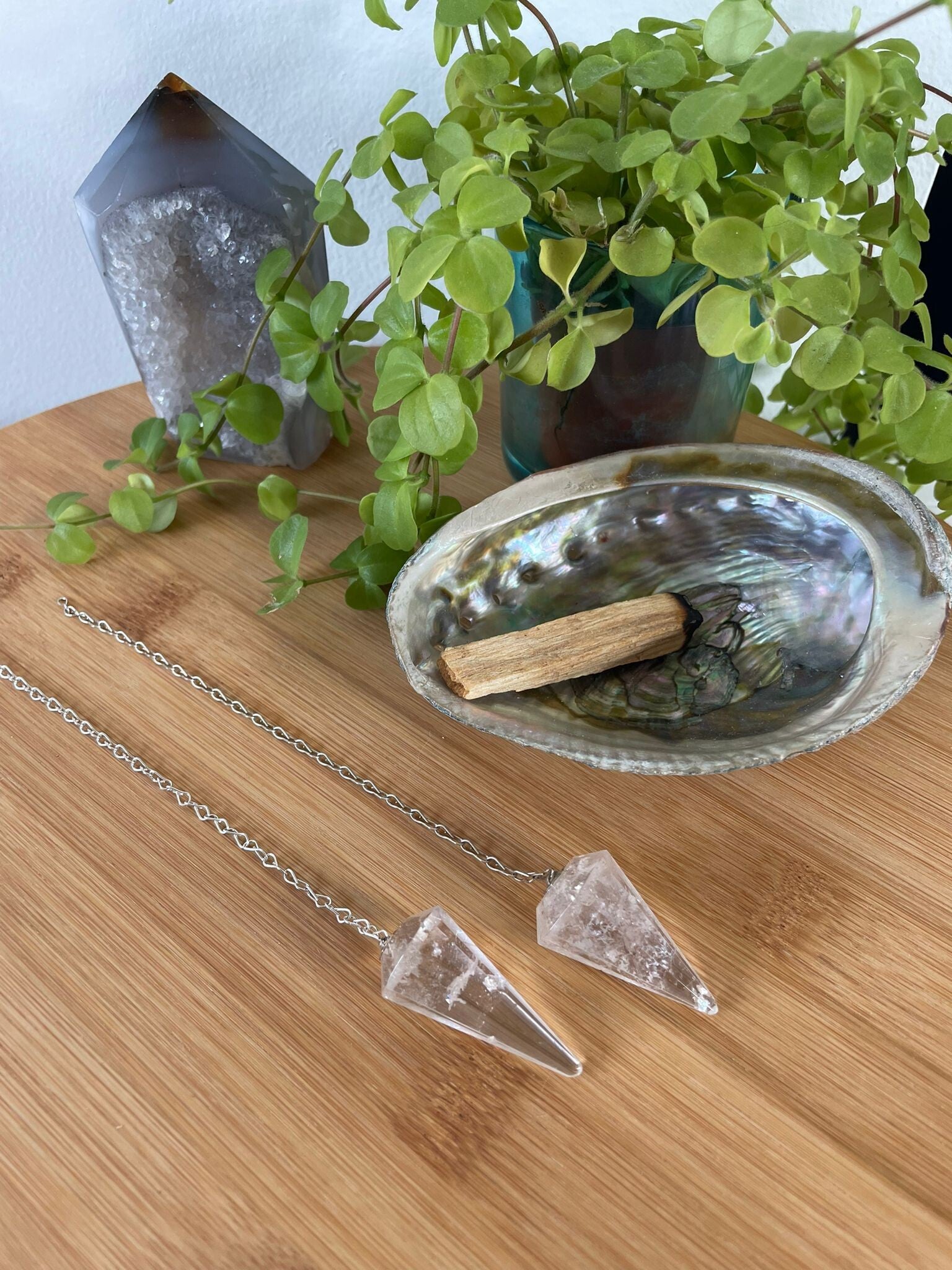 Zilverkleuring kettingkje met pendel van Bergkristal.Hoogte steen: Ongeveer 3,5 cmHoogte inc ketting: Ongeveer 19 cm