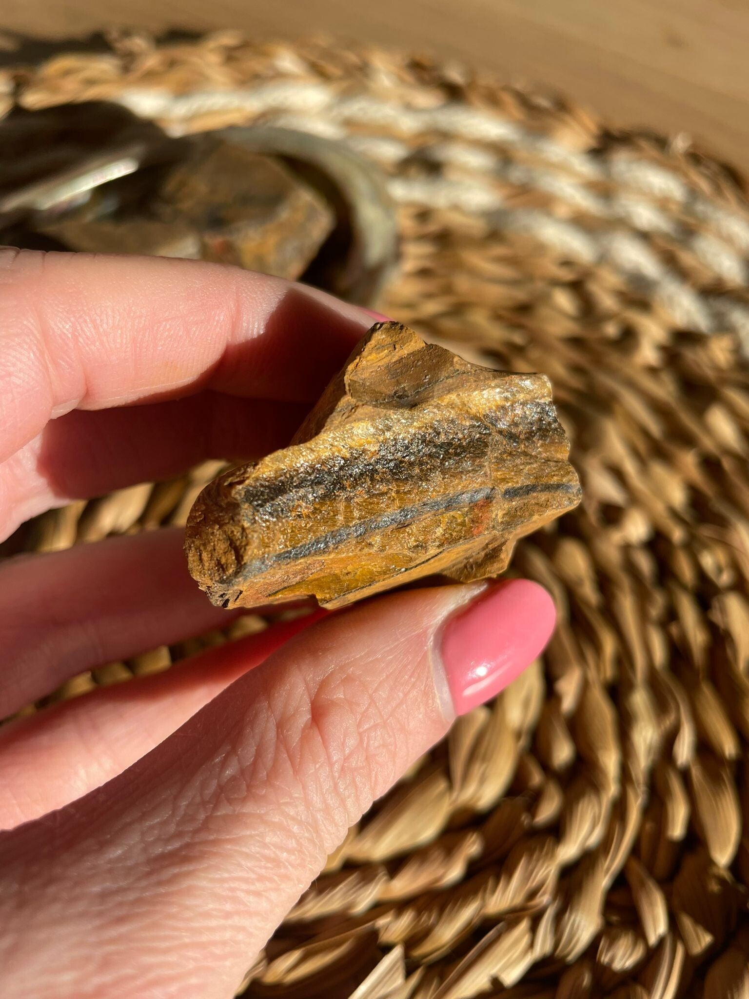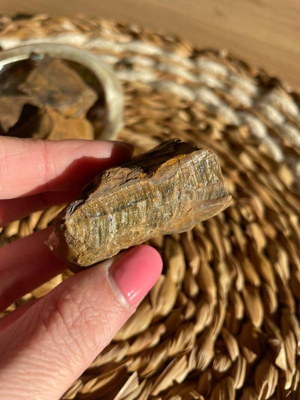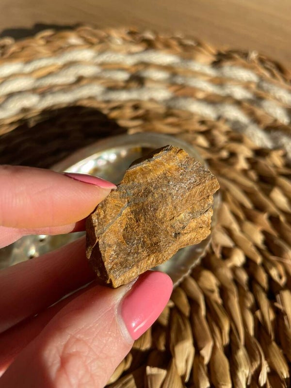 Tijgeroog is een warme, goudbruine steen die schittert als hij het licht vangt. Dat bijzondere glanseffect heet chatoyance, het doet denken aan het oog van een tijger dat in het zonlicht oplicht. Geen wonder dat deze steen zijn naam kreeg!