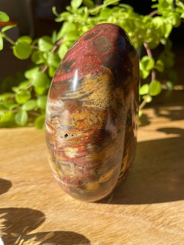 De kleuren variëren van bruin en warm rood tot creme, geel en zelfs zwart, afhankelijk van welke mineralen het natuurlijke “versteeningstraject” meegekregen heeft. Elk stuk is compleet uniek, zoals een vingerafdruk van de tijd.