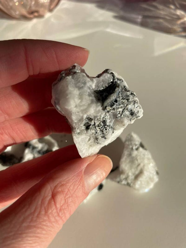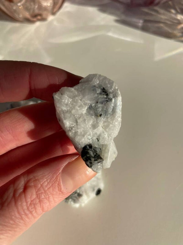 Men zegt dat maansteen helpt om emoties in balans te brengen en je intuïtie te versterken, alsof je innerlijke kompas net wat beter werkt. De steen straalt rust uit, maar heeft ook iets dromerigs en hoopvols, alsof hij fluistert: “Vertrouw het ritme van de maan.”